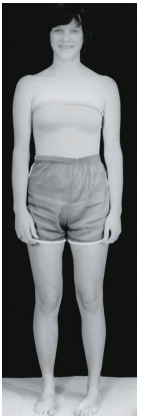 如果是足部本身的問題,髖部和膝部對(duì)線良好,足部則出現(xiàn)前足內(nèi)翻(即前足內(nèi)收)(見圖1)。